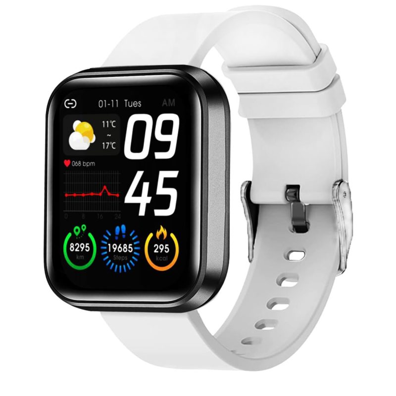 Fitness Band Smart Watch for Men, Women, Boys, Girls, Kids – Single Touch Interface, Water Resistant, Workout Modes, Quick Charge Sports Smartwatch – White