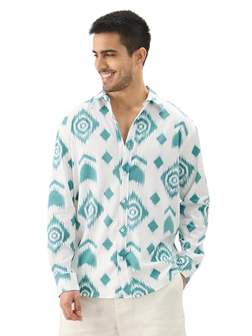 Casual Printed Textured Fabric Shirt for Men Regular Fit Cotton Blend (White)