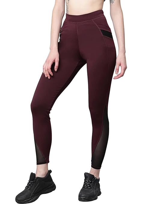Regular High Waist Stretchable Gym Tights Leggings with Crossover Belt for Women & Girls | Gym Wear/Active Wear Tights Yoga Pants (Blush)