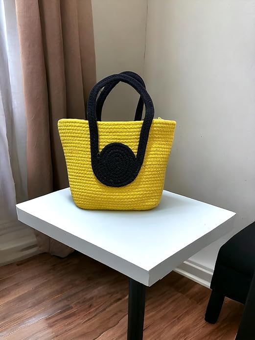 Attractive Hand Bag | Large Tote | Summer Bucket | Bamboo Beach Basket for Women | Boho Handbag | Jute Handmade (Yellow)