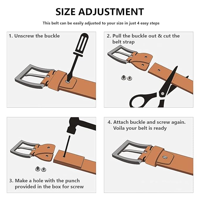 - Stylish and Versatile: Our men’s belt serves as a perfect belt for boys, seamlessly transitioning from business meetings to evening events. Our formal belts for men with classic design complements suits, dress pants as well as casual outfits. Additionally, this adjustable belt for men offers versatility, allowing you to switch styles effortlessly for any occasion.