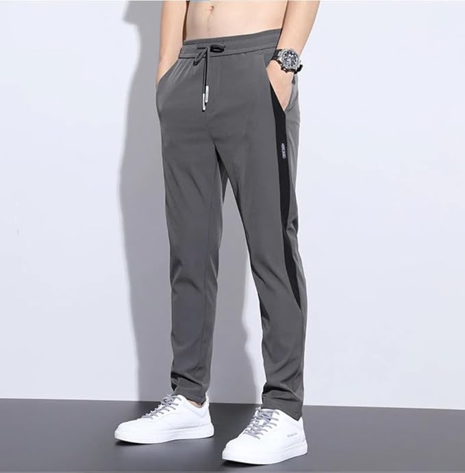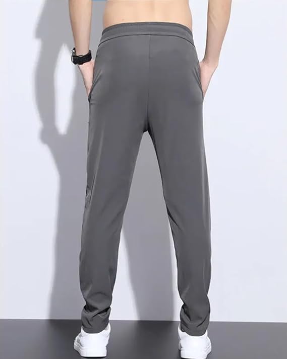 Joggers Park Men's Lycra Stretchable Full Length Trackpants | Casual Wear Athletic Joggers with Elastic Waistband and Pockets (Grey)