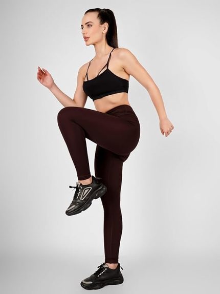 Regular High Waist Stretchable Gym Tights Leggings with Crossover Belt for Women & Girls | Gym Wear/Active Wear Tights Yoga Pants (Maroon)